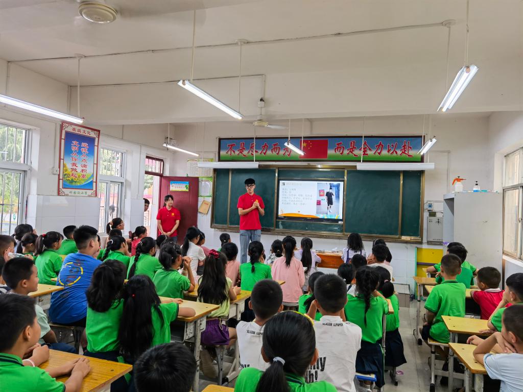 “三全育人”社会实践支教队于7月5日早上6点乘车前往竹园沟小学。在各领导和老师的带领下,队伍顺利抵达了南阳市南召县竹园沟村委会,并举行了志愿服务实践基地揭牌。