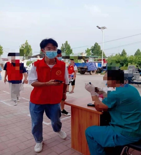 这个暑假的河南是特殊的,既要防洪又要抗疫。利用暑假空闲时间,李梦成同学尽自己的能力可能多的为家乡做些事,多为河南做些事。他帮助村民完成核酸检测,注册、检测信息,坚守疫情防控卡点,还通过张贴标语、发放材料等方式,耐心宣传新型冠状病毒的传播途径和防护措施,提高居民的防范意识。通过此次志愿活动,他深刻体会到作为一个青年大学生的义务和责任。