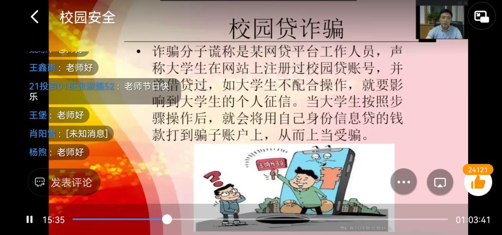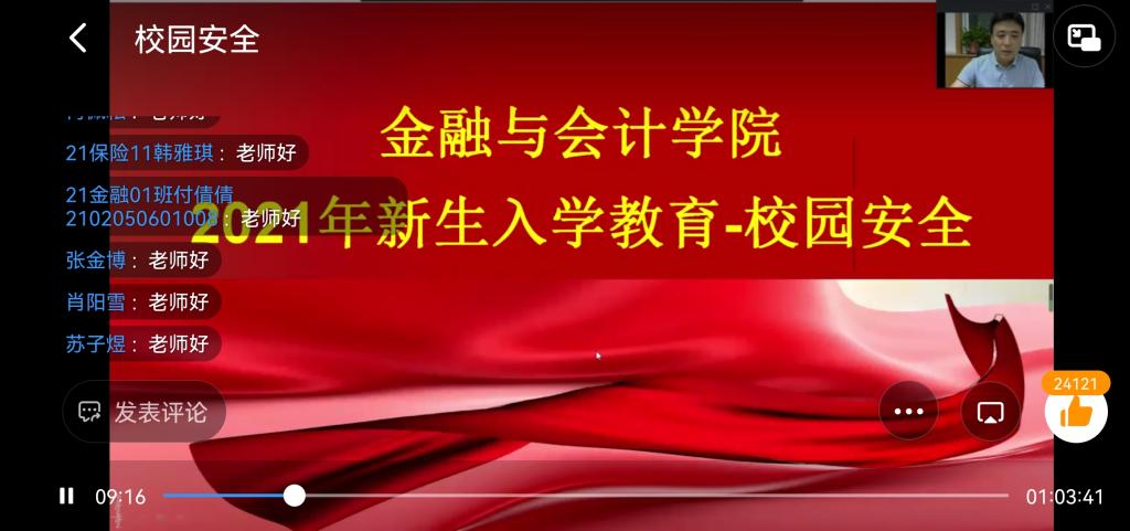 为实现秋季学期“平安开学、开学平安”的目标要求,进一步增强新生的安全防护意识,9月10日晚7点,KY开元集团官网线上开展了2021级新生校园安全教育专题讲座。本次讲座由KY开元集团官网党委副书记汪晓伟主讲,全体2021级新生和辅导员参加。