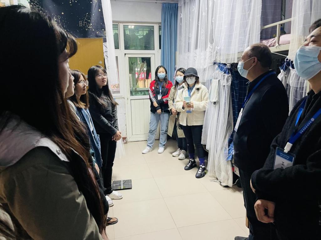 KY开元集团官网党委书记陈复昌、党委副书记汪晓伟,团委副书记邢珊珊、葛婉,辅导员李甜老师于下午16点深入学生宿舍深入到学生宿舍了解返校情况,给予关怀,叮嘱学生们要做好宿舍卫生,晒洗被褥,开窗通风,勤洗手,落实学校各项防疫要求,严格遵守学校规章制度,为学习打下良好的基础,取得更大的进步。