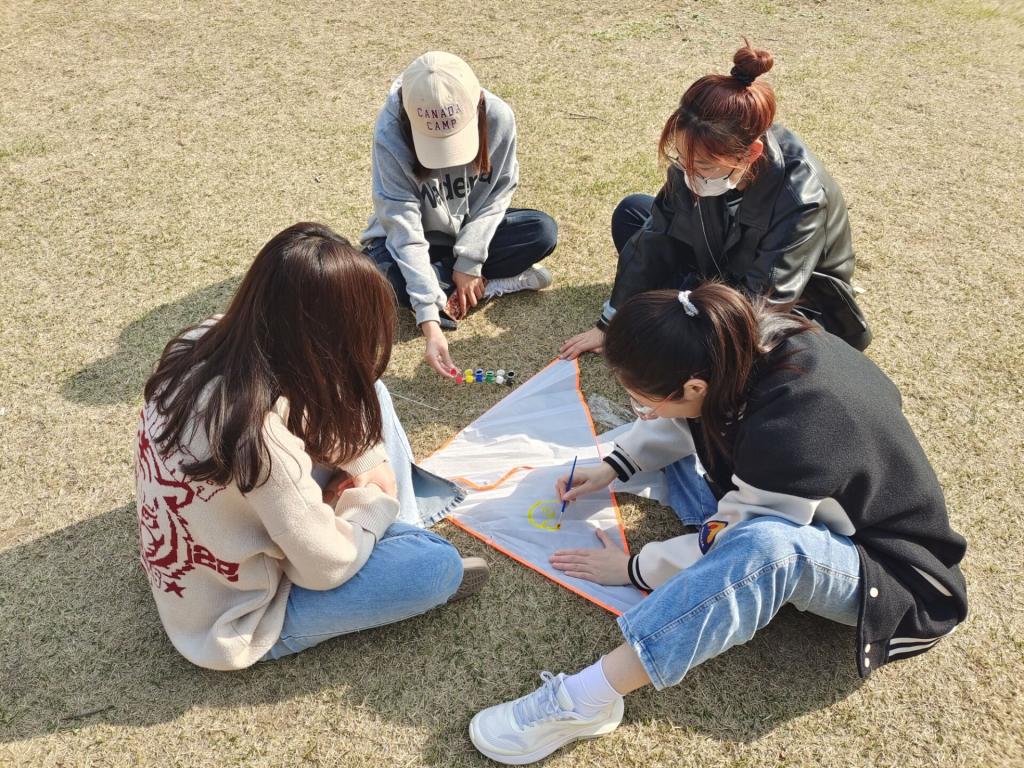 活动当天,绘心工艺社团的工作人员把事先收集的风筝分发,做好记录工作。并且响应疫情防控号召学生分批进行活动,此次活动由不同学院的同学共同参加,大家相聚在蓝天下,纵乍暖还寒时,也“不及风筝迭递敲”。一个个崭新的风筝由同学们亲手上色涂鸦,落笔写字,趁着春风被送上了天空,好比将自己的一个个美好的愿景去请春风帮我们实现。天穹云霞相辉映,“纸鸢跋扈挟风鸣”。一场适宜的室外活动也让我们因疫情和冬天而困顿的身体得到舒缓释放。