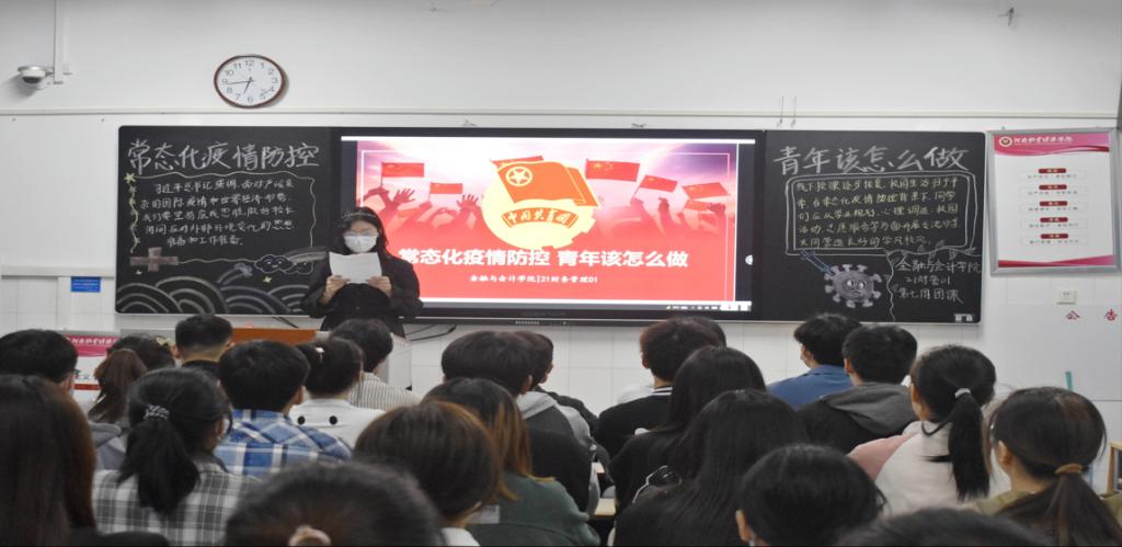 伴随着嘹亮的团歌声,各团支部组织的团课也随之展开。青年团员们热情高歌团歌,注意力高度集中。各班团支部通过观看习近平总书记对疫情常态化管控的讲话,从学业规划、心理调适、校园活动、志愿服务、时间管理等方面开展分享交流,充分彰显了浓浓的爱国情怀以及关注国之大事的赤心。团课过程中,学生代表积极发言,从多个角度,多层方面诠释本次团课主题,并表明要积极参与防疫志愿活动,将手中行动与心中情怀统一,做“有敢担责”青年,面对疫情不松懈,勤学笃行重实践。