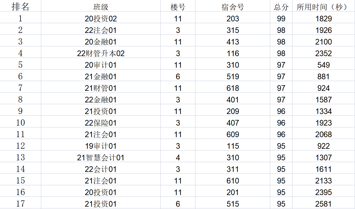 组织部举办“踔厉奋发,勇毅前行”——党的二十大知识竞赛活动。活动采取线上限时答题形式进行,最终选出了17个表现优异的宿舍团小组授予“优秀学习小组”荣誉。通过知识竞赛,不仅增强了宿舍团小组的团结协作能力,也让同学们在比赛中提高了自身政治素养,学习领悟了习近平新时代中国特色社会主义思想的科学体系、丰富内涵、精髓要义和最新发展以及党的二十大精神。