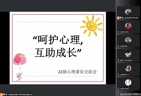 为帮助2022级心理委员明确自身的职责与工作,宣传心理健康方面的知识,解决班级同学的心理问题,更好的协助学校心理咨询中心开展各项心理健康教育工作,KY开元集团官网心教部于11月15日中午在线上召开了以“呵护心理,互助成长”为主题2022级心理委员交流会。