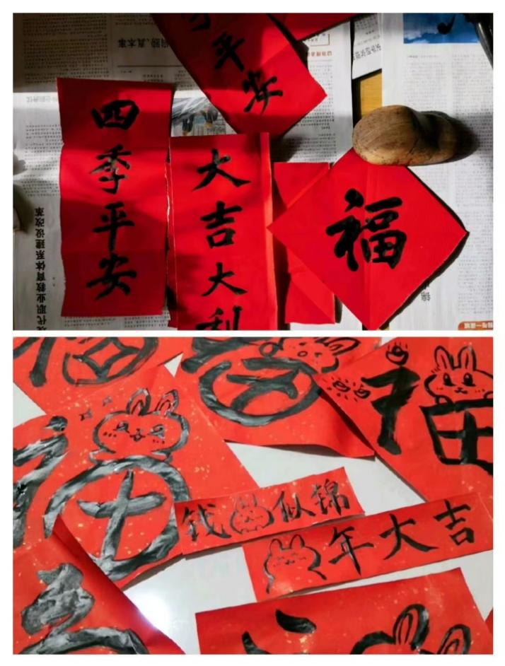 随着春节脚步临近,新春年味逐渐“浓”起来,为营造欢乐祥和的节日氛围,向广大社区居民送上新春的祝福,邢宇鑫同学所在的社区新时代文明实践站开展“迎新春、送春联”活动。为了给社区居民送上满满的新春祝福,社区也提前邀请了许多书法爱好者,邢宇鑫同学也参与了此次活动,为居民撰写了对联和福字。活动现场人头攒动、热闹非凡,饱含幸福吉祥、寄托美好希望。此次活动增加了邻里情谊,也进一步营造了和谐美好的浓厚氛围。