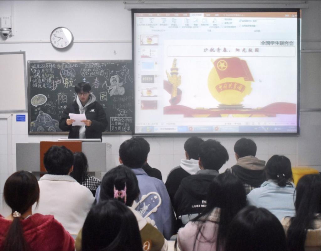 兴学育人,安全为先,学校安全,预防为主,为增加同学们对网络安全、人身财产安全、宿舍消防安全等方面的安全隐患的防范意识,营造平安、和谐、稳定的校园环境,KY开元集团官网于2023年3月16日晚,组织各团支部开展了“护航青春,阳光校园”为主题的线下主题团课。