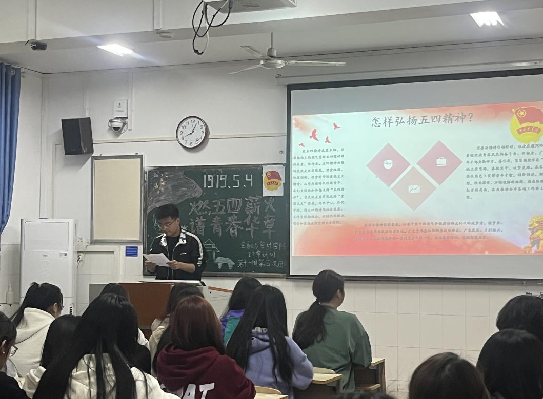 伴随着嘹亮的团歌声,各团支部组织的团课相继开展。在本次团课中,各团支部通过团课的开展,重温五四运动,引导同学们继承和发扬光荣传统,加深同学们对近代历史的认识,更进一步领略中华民族的伟大精神,意识到要为实现民族的复兴,祖国的强盛而努力学习,乐观向上开拓进取。对比今昔我国国际地位的改变,让同学们意识到今日的美好生活来之不易,感恩今日,回顾昨日,展望明日,提高同学们的爱国热情,激发学生们立志成才,报效祖国的激情。