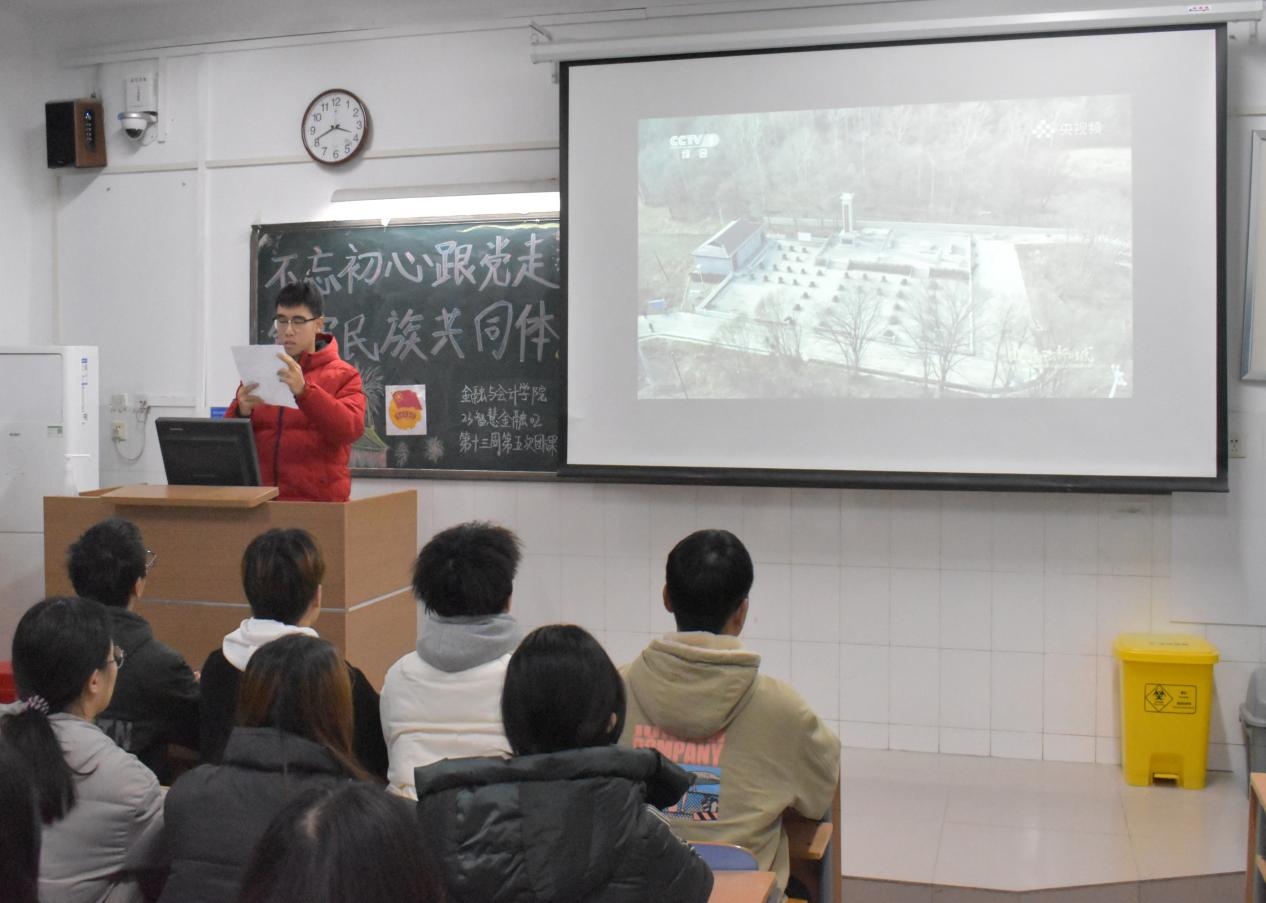伴随着嘹亮的团歌声,各团支部组织的团课相继开展。在本次团课中,各支部首先介绍了爱党敬党的人物模范代表以及中华民族共同体的相关内容,让同学们深刻地认识到作为一名中国人的自豪感和使命感。随后,各支部学生代表发表自己的意见,引导同学们认真学习贯彻党的二十大部署,准确把握党的民族工作新的阶段性特征,大力促进各民族共同团结奋斗,为强国建设、中华民族伟大复兴凝聚磅礴力量。