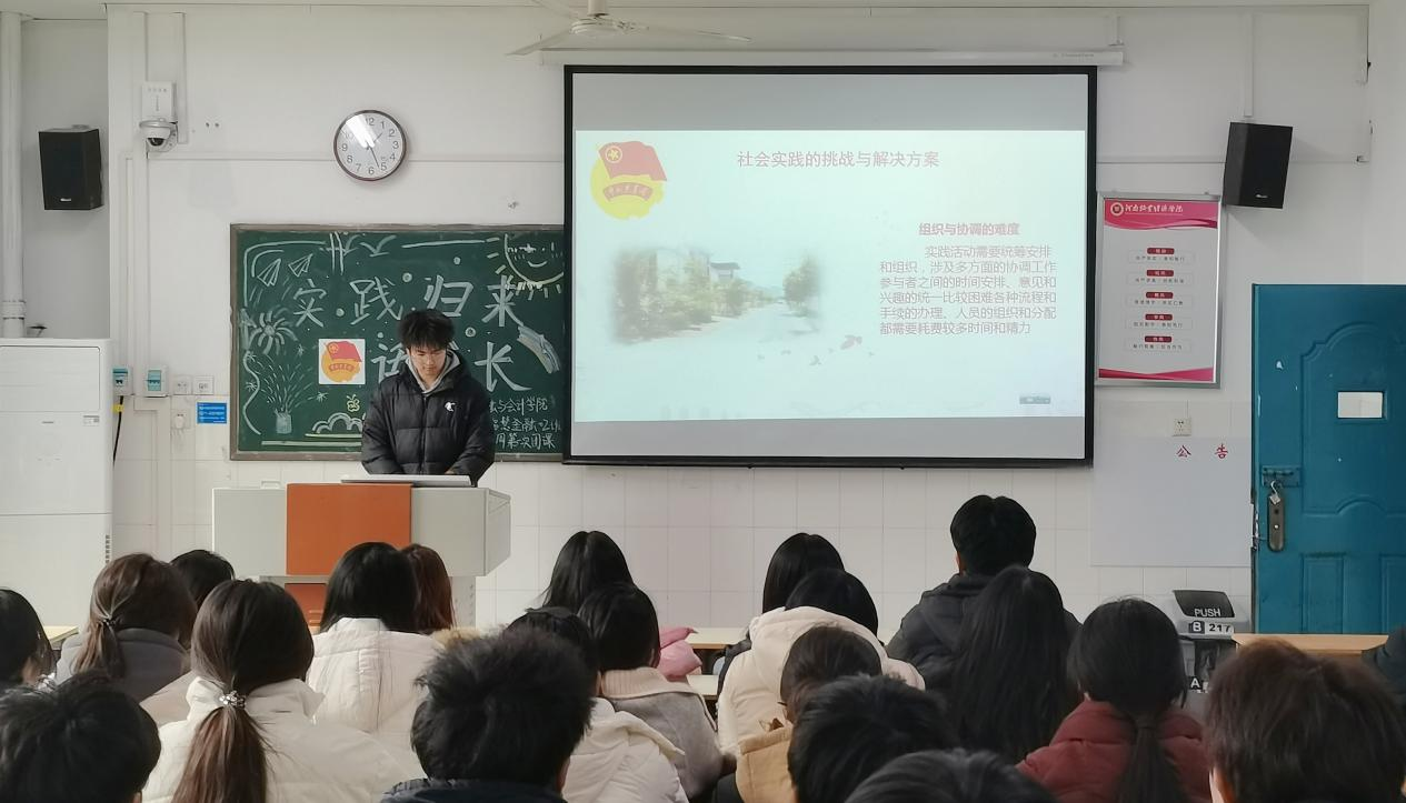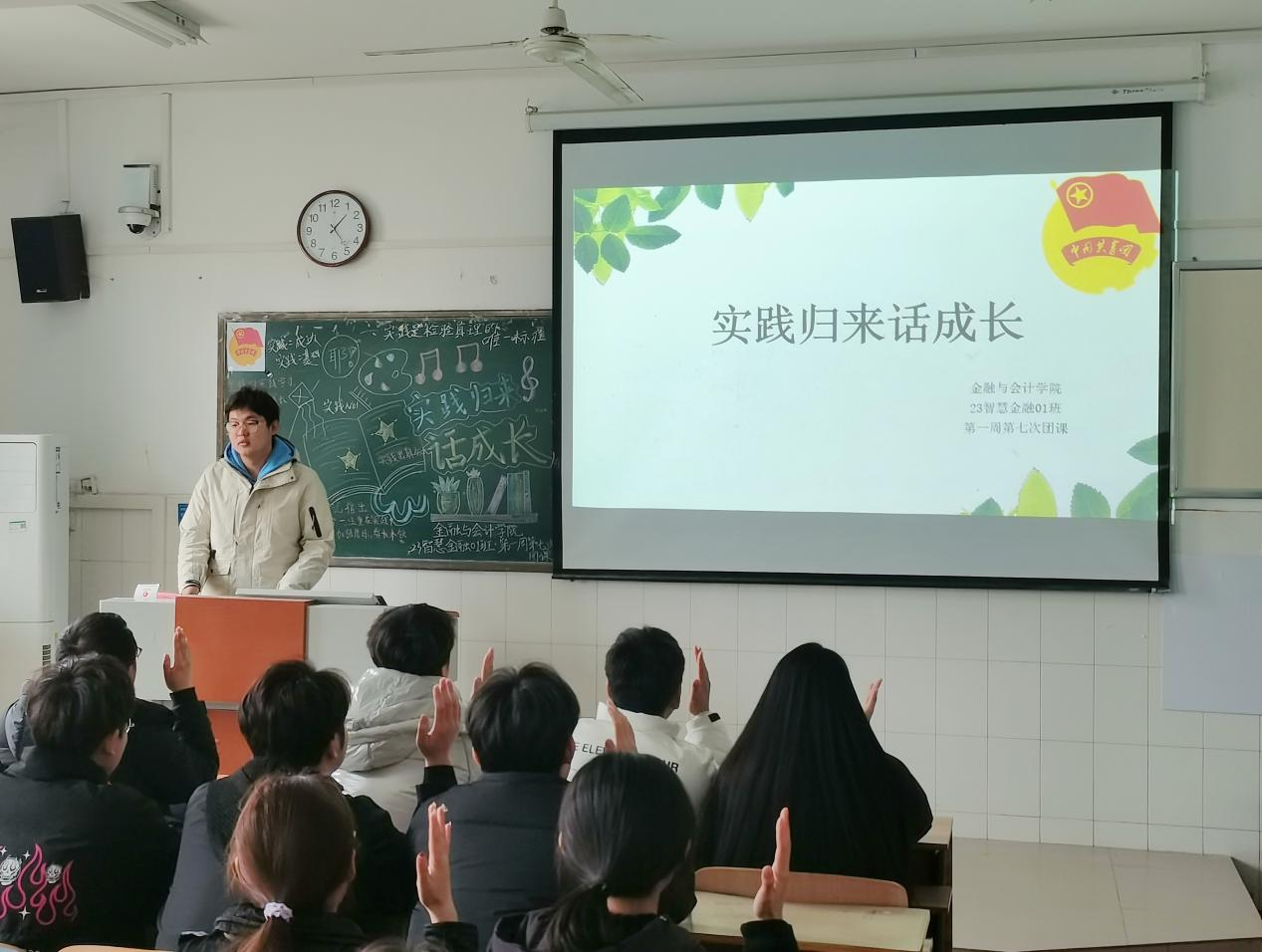 伴随着嘹亮的团歌声,各团支部组织的团课相继展开。首先,各班团支书向同学们介绍了实践的意义和重要性。随后,各班学生代表依次介绍和分享自己在寒假期间参与社会实践的内容及心得体会。最后,各班团支书进行团课总结,鼓励同学们积极参加社会实践,树立远大的理想,为社会的发展贡献自己的一份力量。