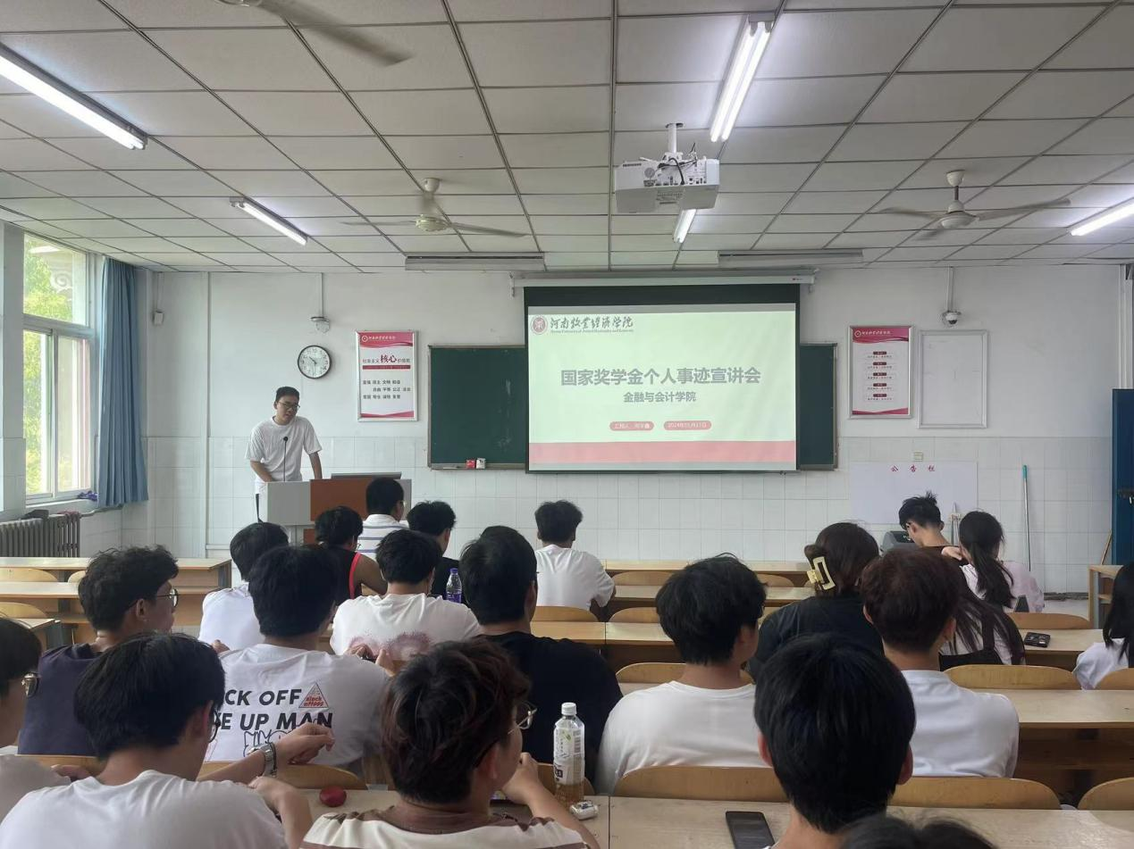 青年与国家相系,青春与时代同频。为大力宣传国家资助政策及育人成效,充分发挥国家奖学金获得者的示范引领作用,推进学院学风建设,5月20日,KY开元集团官网在教学W205教室举办国家奖学金先进事迹宣讲会。本次活动由KY开元集团官网国家奖学金获得者邢宇鑫进行宣讲,学院资助专员原晨光主持。