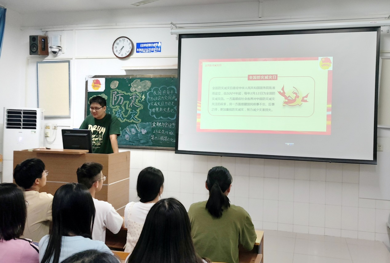 5月22日是第16个全国防灾减灾日,为响应学校“2024年度防汛应急预案”和“平安校园”建设有关要求。23会计01、23注会01、23审计01、23投资01、23保险01、23财管01、23智会03、23CIMA03、23АCCA03开展以“珍视生命安全——人民至上生命至上”为主题的线下团课活动。