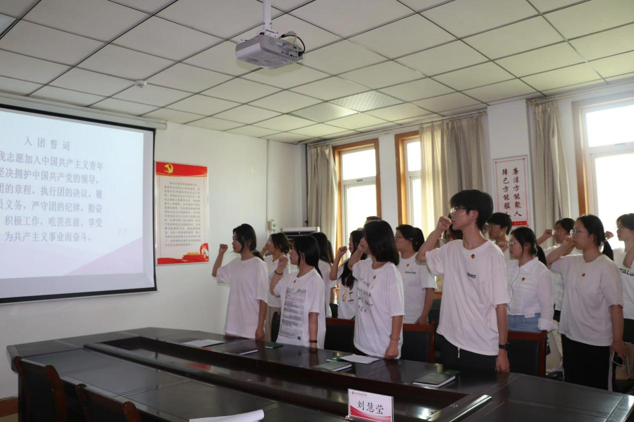 伴随着雄壮的国歌奏响,仪式正式开始。在团员代表王思宇同学的带领下,团员们面向团旗,举起右拳,庄严宣誓!他们以铿锵饱满的热情,向团组织表明自己的决心。会上,学院团委副书记刘慧莹老师对新入团的同学们表示热烈的欢迎与祝贺,对他们提出了殷切的期盼与要求,敦促他们积极参与团组织的各项活动,为社会的进步、国家的发展贡献自己的力量。