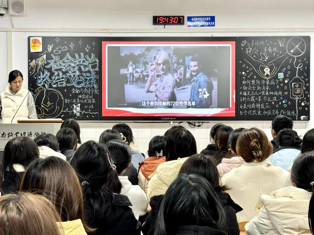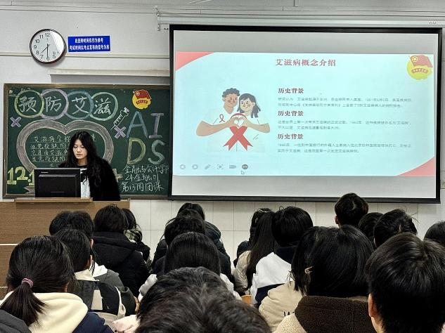 伴随着嘹亮的团歌声,团课活动正式开始。首先各班通过学习预防艾滋相关知识,初步了解艾滋的危害和预防艾滋的重要性。随后,现实案例的列举使同学们对预防艾滋具体措施有了进一步的了解。接着,在团课演讲、提问和分享感悟等活动的开展下,引导同学们真正明白了“终结艾滋,共享健康”的意义所在。