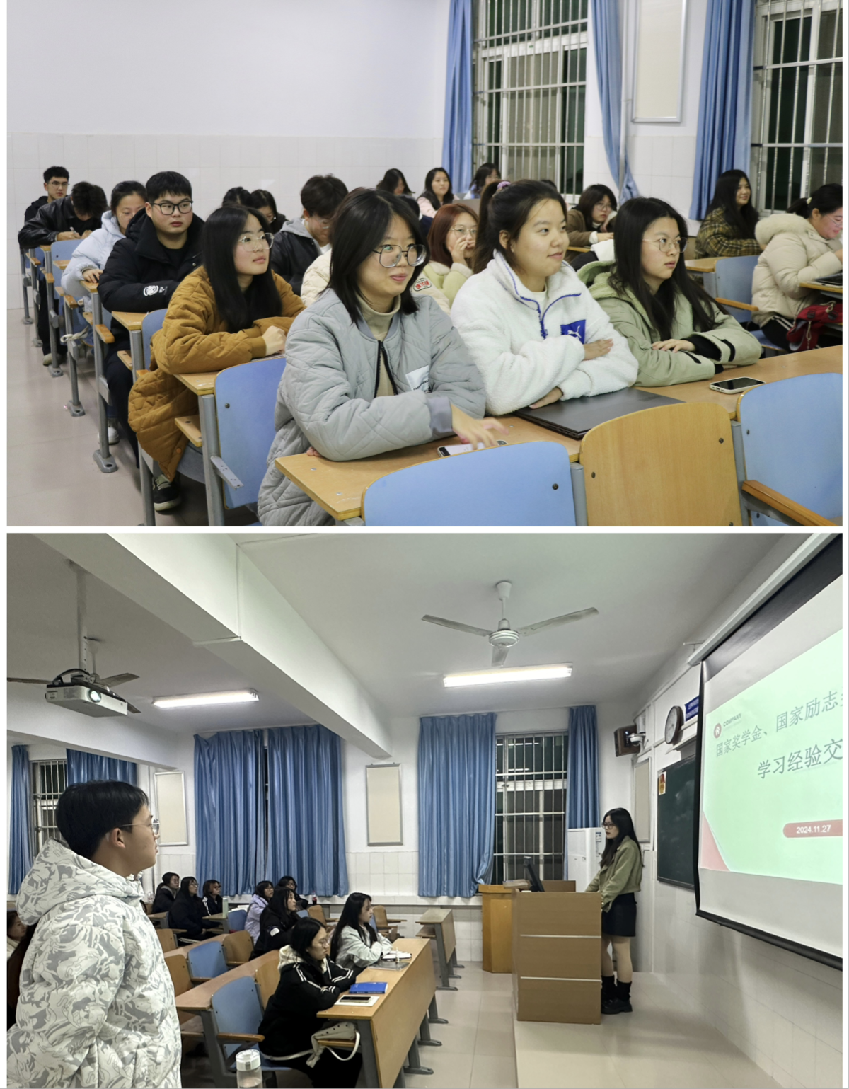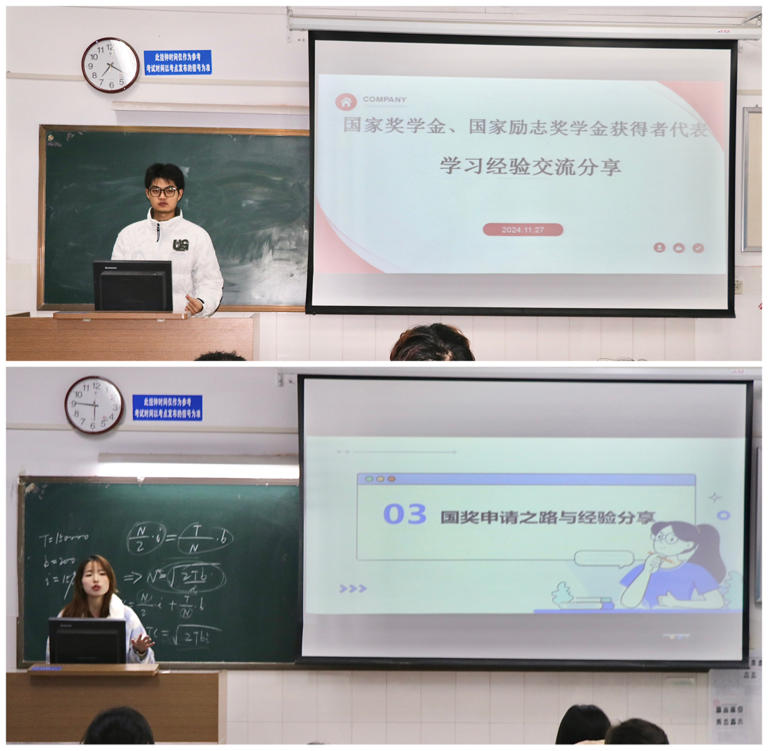 为充分发挥先进典型的引领作用,激励KY开元官网广大学生勤奋学习,奋发向上,KY开元集团官网近期举办了国家奖学金、国家励志奖学金获得者学生代表学习经验交流分享活动。本次活动共有18位优秀学生代表深入班级进行分享交流。