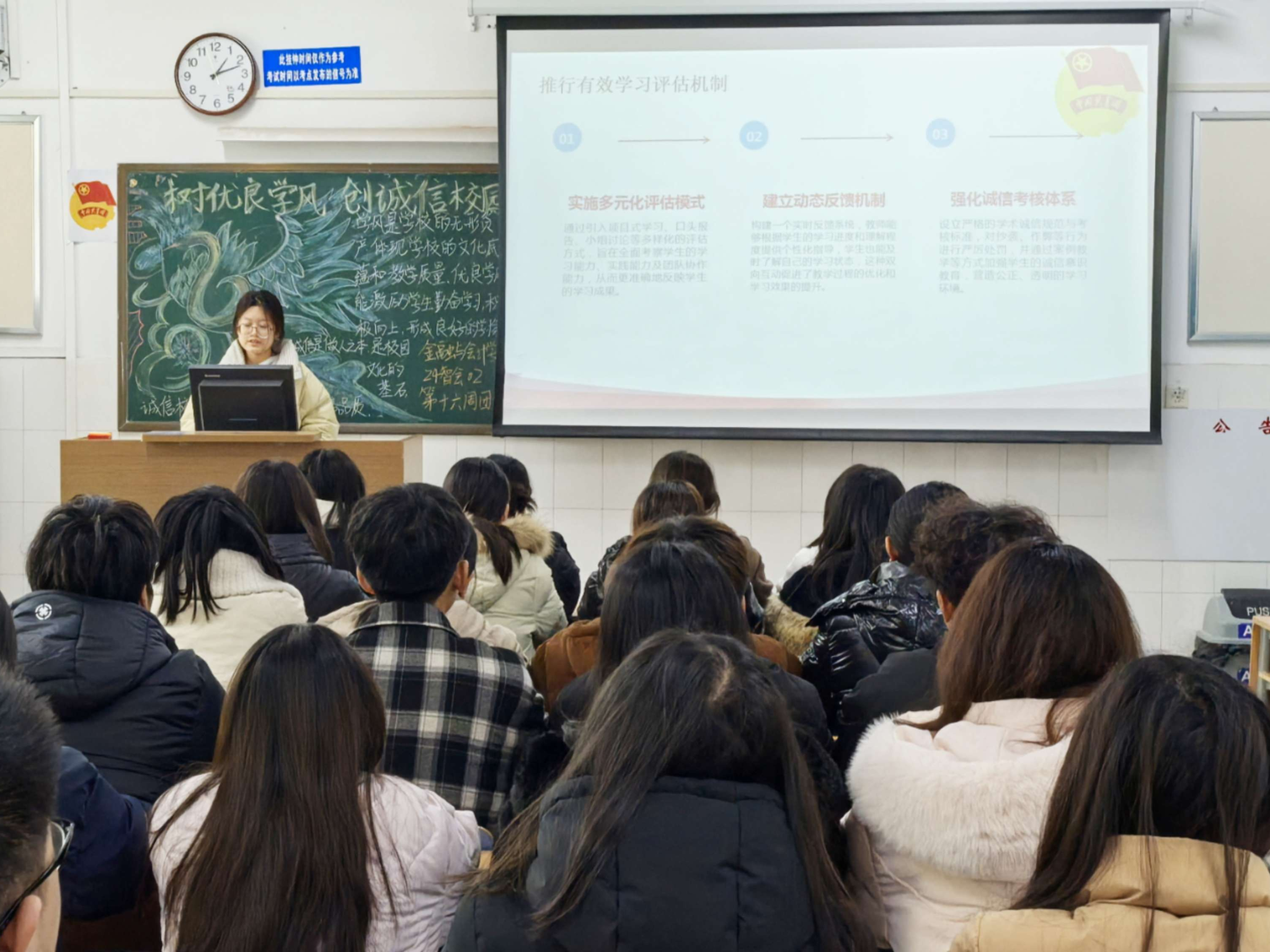 临近期末,为弘扬诚信精神,宣扬社会主义核心价值观,强化同学们诚信考试的意识。KY开元集团官网于12月19日开展了以“树优良学风,创诚信校园”为主题的团课活动。