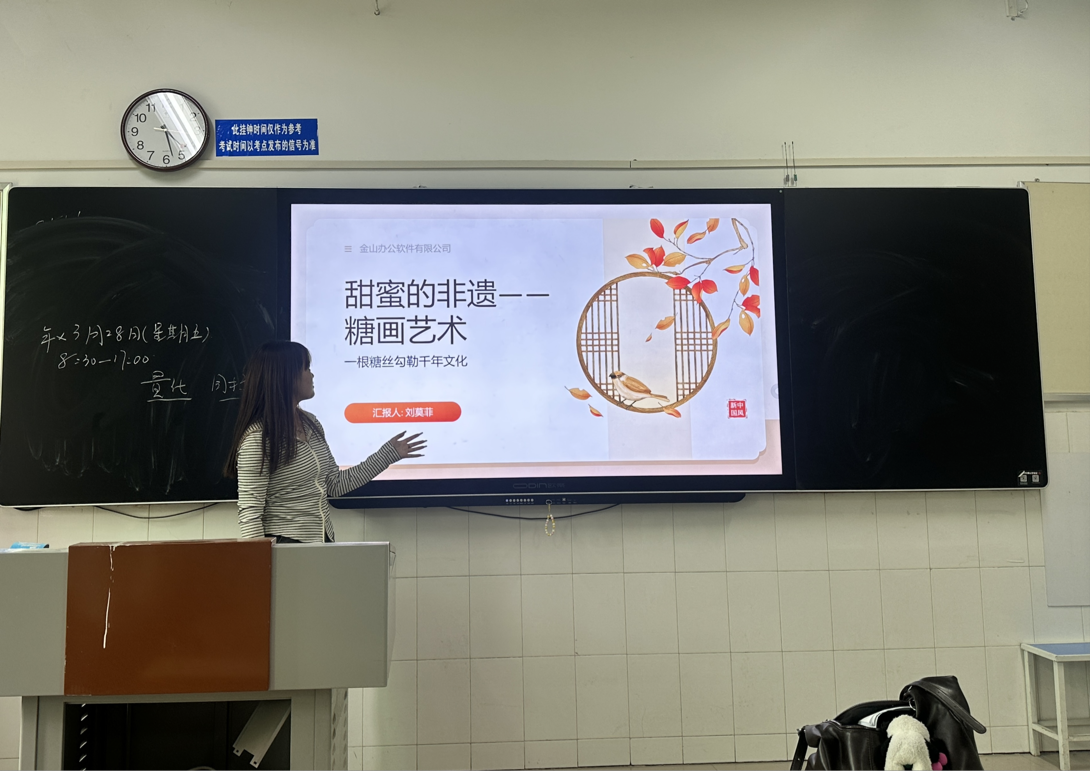 课间的教室里,同学们聚焦非物质文化遗产与经典典籍等,分享内容精彩纷呈。一位同学借助图文资料,详细介绍了糖画这项指尖技艺背后的历史传承与匠人匠心;另一位同学则分享了书法典册,从碑帖笔法谈到文人风骨,解读传统书法艺术的美学价值。每一次分享都展现了同学们对传统文化的深入思考和独特见解,现场交流氛围热烈。