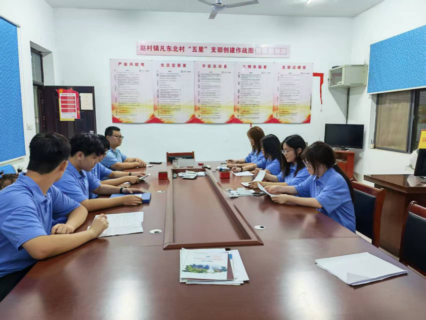 活动伊始,志愿服务队在凡东北村村委会举行启动会。李响老师强调此次推广实践的意义,并不仅在于推广语言,更在于响应国家语言战略,助力乡村文化交流,并围绕社会实践的安全保障、纪律规范、宣传推广等方面与团队成员进行交流并提供指导,共同敲定各处细节。