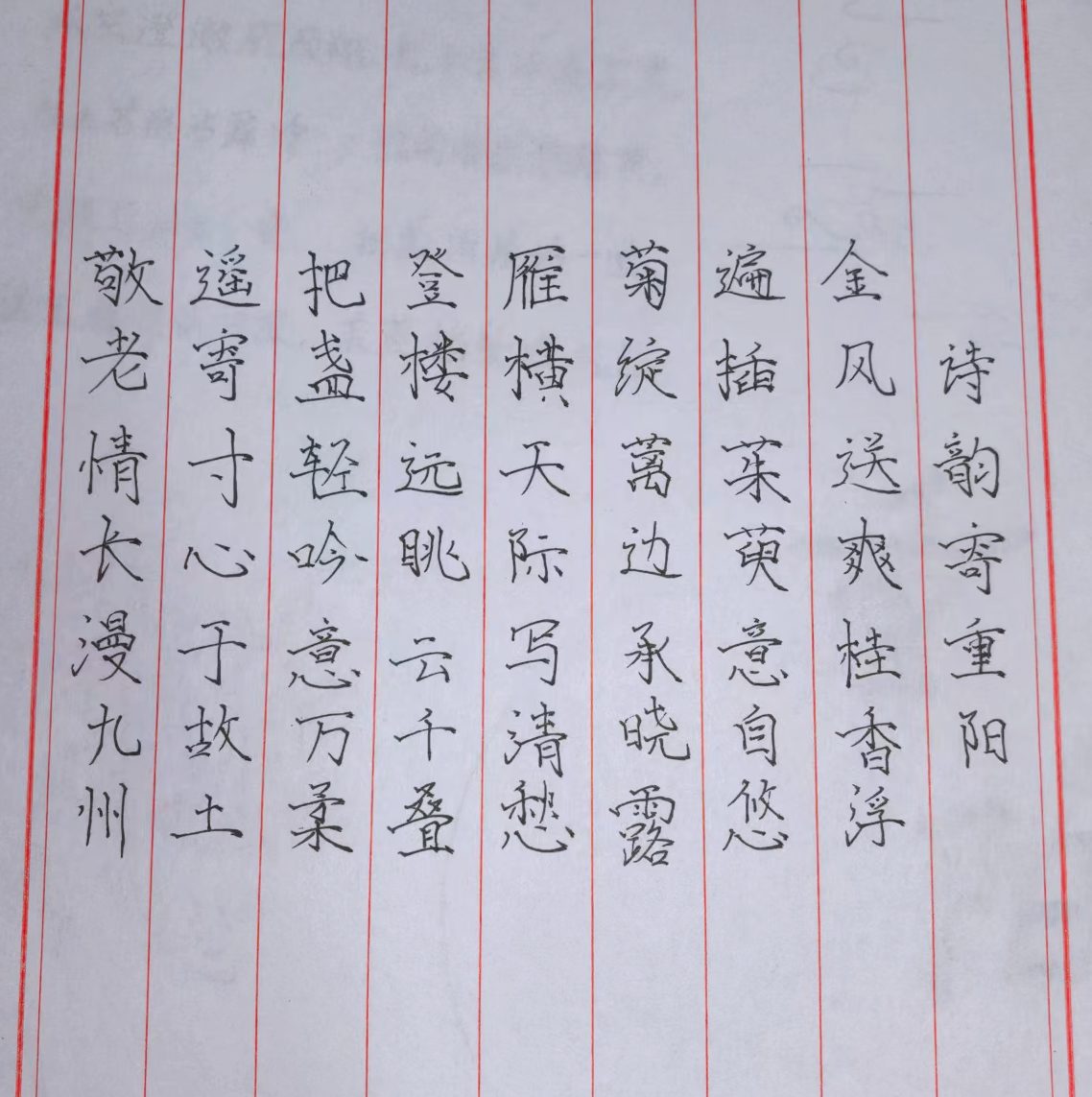 活动期间,同学们围绕秋日菊桂、登高望远、陪伴长辈、思念亲人等主题,以诗词创作与绘画或书法相结合的形式抒发情感、传递文化。纵览参赛作品,诗情画意间既有对秋日风光的赞美,又有对登高望远的憧憬。一字一句斟酌诗意,一笔一画描摹秋景,每一笔触里,都满是对重阳节的温情礼赞与美好期许。