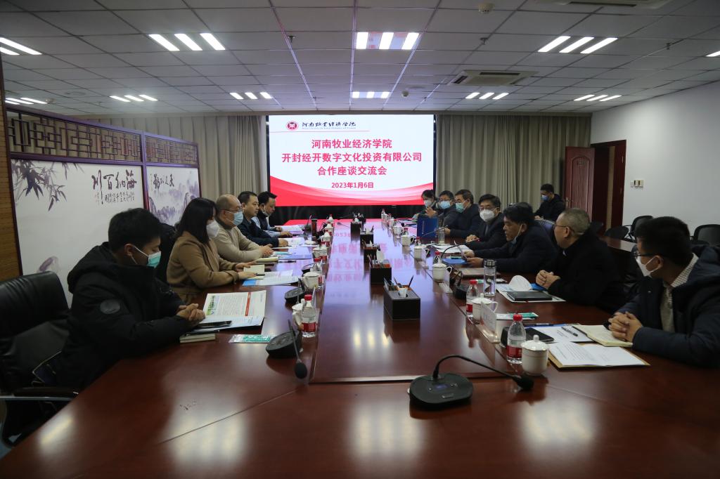 1月6日上午,在龙子湖校区图书馆841会议室,校长罗士喜会见了开封经开数字文化投资有限公司总经理郭一霖一行,双方就共建艺术金融产业学院展开了商讨,并达成了合作意愿。会议由副校长杨国宇主持。