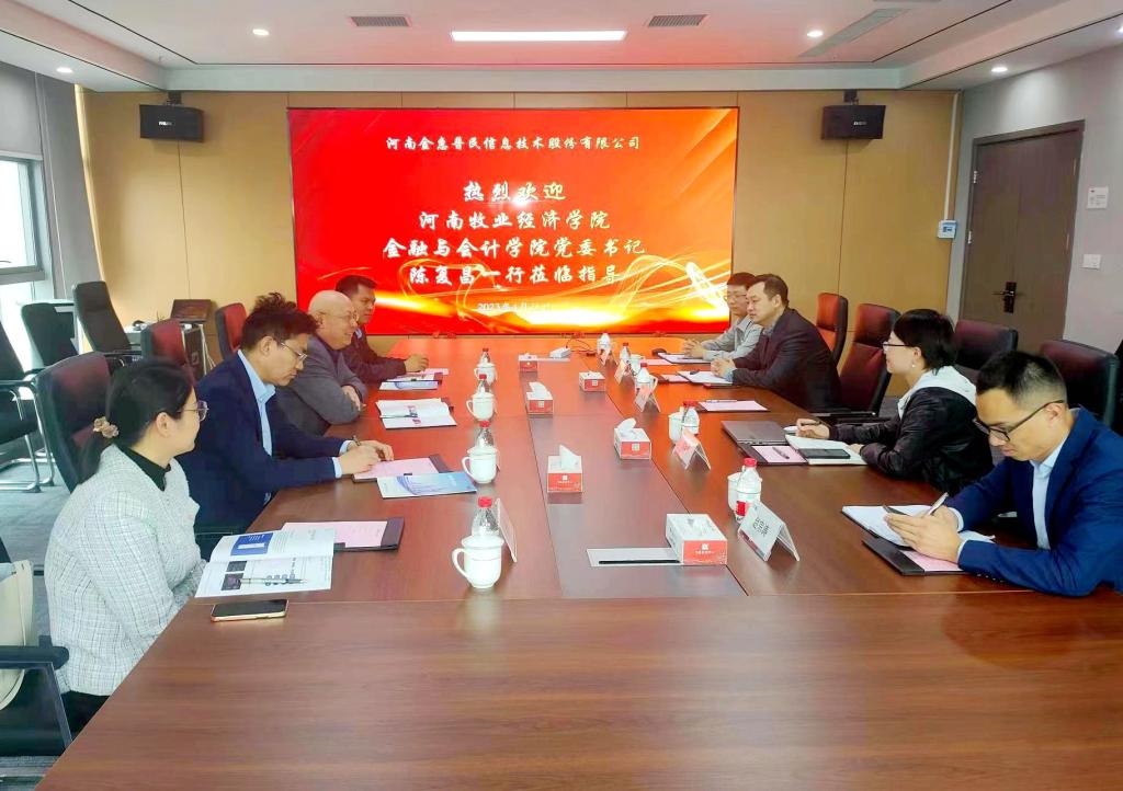 为进一步拓宽毕业生就业渠道,助力毕业生充分就业,4月21日上午,KY开元集团官网党委书记陈复昌,投资学教研室主任王豪杰,团委副书记顾自卫一行前往河南金惠普民信息技术股份有限公司进行调研考察。公司副总经理王凯、运营部总经理贺亚男、普惠金融部总监于迎冬等热情接待了陈书记一行。