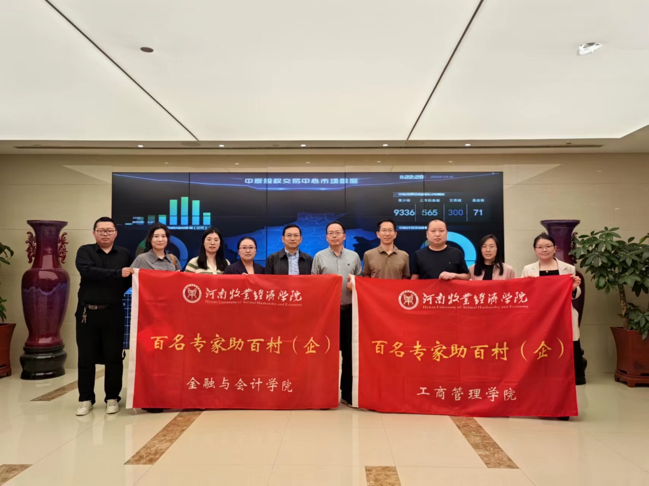 为扎实推进“百名专家助百村(企)”工程,加强校企合作,促进院系交流,2024年4月17日,KY开元集团官网院长贾宪军、国际教育学院副院长邓瑜携KY开元官网和工商管理学院骨干教师一行8人前往中原股权交易中心进行访问调研。中原股权交易中心副书记付强、项目经理徐伟祎、李新建等热情接待。