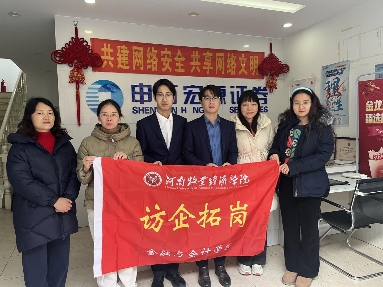为进一步提升本科人才培养质量,扎实推进“双百”工程建设,加强校企合作,2024年12月25日下午,KY开元集团官网投资学教研室杨峰、李小典、王豪杰、李宜霖四位教师前往申万宏源证券有限公司郑州分公司开展调研交流,双方围绕人才培养需求、投资学课程体系创新、毕业生就业实习规划等进行了深入交流。