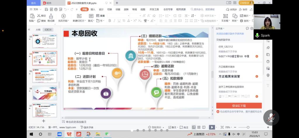 为落实贷款毕业生还款确认工作及进一步加强贷款毕业生的诚信教育,使其明确诚信还贷的必要性、可行性及违约造成的严重后果,保证贷款毕业生离校后还本付息的有关政策有效实施,6月1日下午,KY开元官网于腾讯会议平台召开2022届毕业确认暨诚信教育会议。会议由学院宣讲员崔佳佳同学主持,2022届贷款毕业学生70余人参加了本次会议。