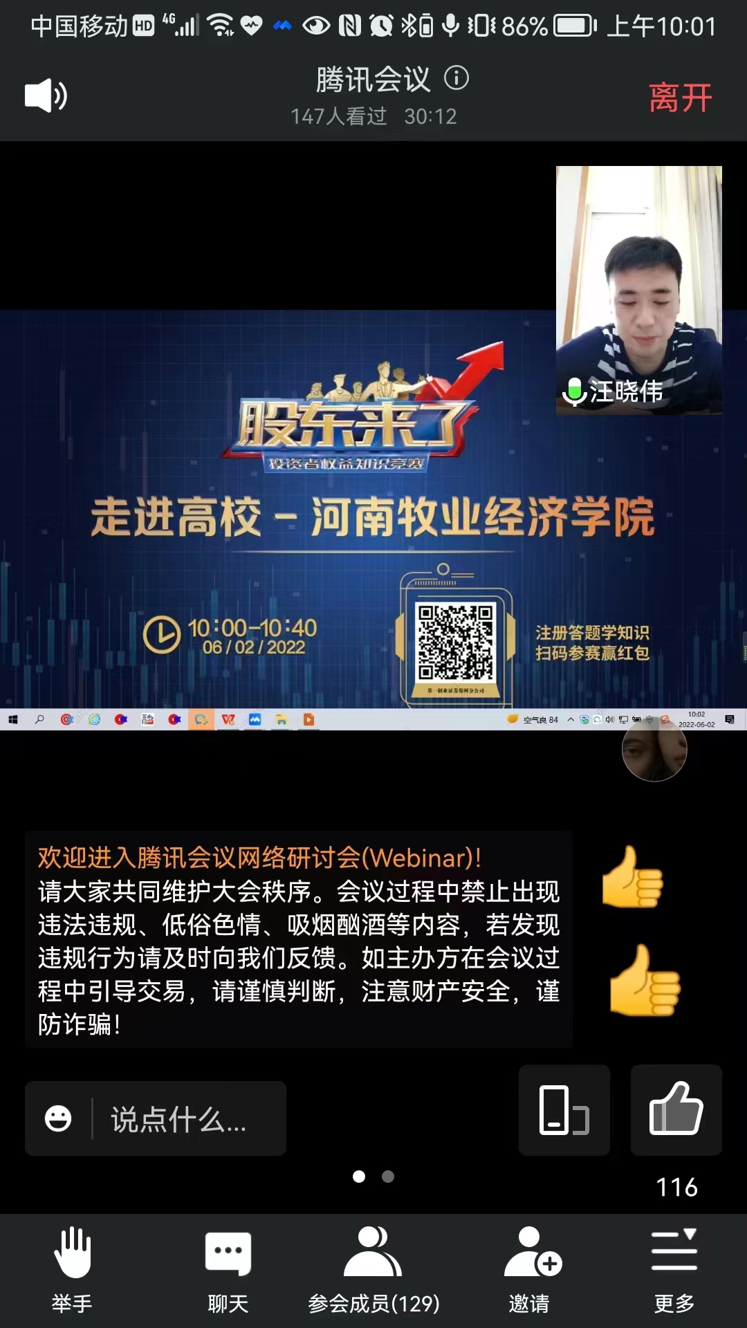 《股东来了》是由中央电视台财经频道主办,中国证监会办公厅、投资者保护局为指导单位举办的投资者权益知识竞赛活动。2022年6月2日,KY开元集团官网与深圳第一创业证券股份有限公司合作,通过线上宣讲的方式面向KY开元官网师生开展第五届《股东来了》活动宣讲会。